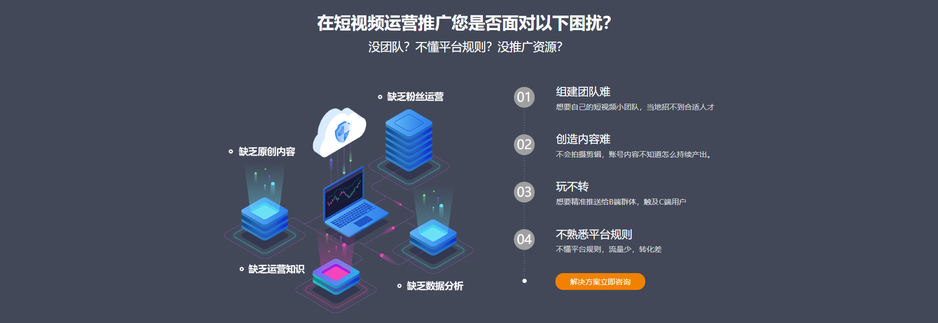 1. 十年網絡營銷團隊 十年互聯網從業經驗,讓我們更能把握住企業短視頻推廣的重點。